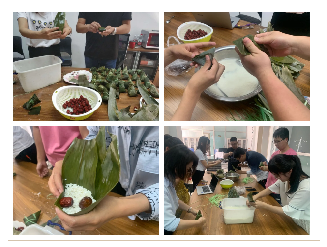 為弘揚(yáng)中國傳統(tǒng)節(jié)日,紀(jì)念楚國大夫屈原,也為加深員工之間的交流,增強(qiáng)員工歸屬感,體驗(yàn)節(jié)日氛圍,共度傳統(tǒng)佳節(jié)。全體小伙伴們于2020年6月24日下午在一樓會議室組織開展“喜迎端午佳節(jié),共創(chuàng)和諧環(huán)瑞”活動! 活動設(shè)置為巧手包粽、你來比劃我來猜游戲環(huán)節(jié)等環(huán)節(jié)。