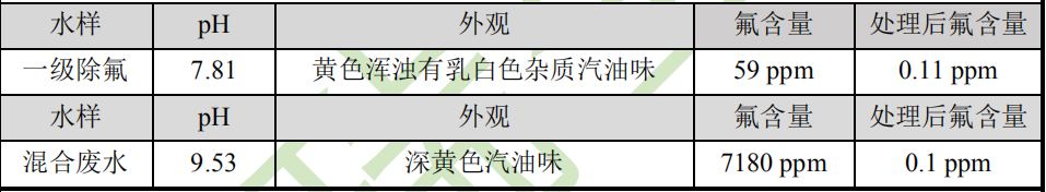 根據實驗報告數據可知,山東環瑞生態的高效除氟劑有較好的去除氟化物的作用,試劑用量可以根據污水的含氟量和PH值進行調節。