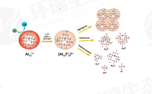 部分鋁以聚羥陽(yáng)離子[Al13O4(OH)24]7+形態(tài)存在,該形態(tài)具有高電荷密度和中聚合度。由于F-和OH-的離子半徑和電荷都十分接近,[Al13O4(OH)24]7+的部分OH-能夠與F-產(chǎn)生離子交換,最后得到Al13Fn(OH)m沉淀.