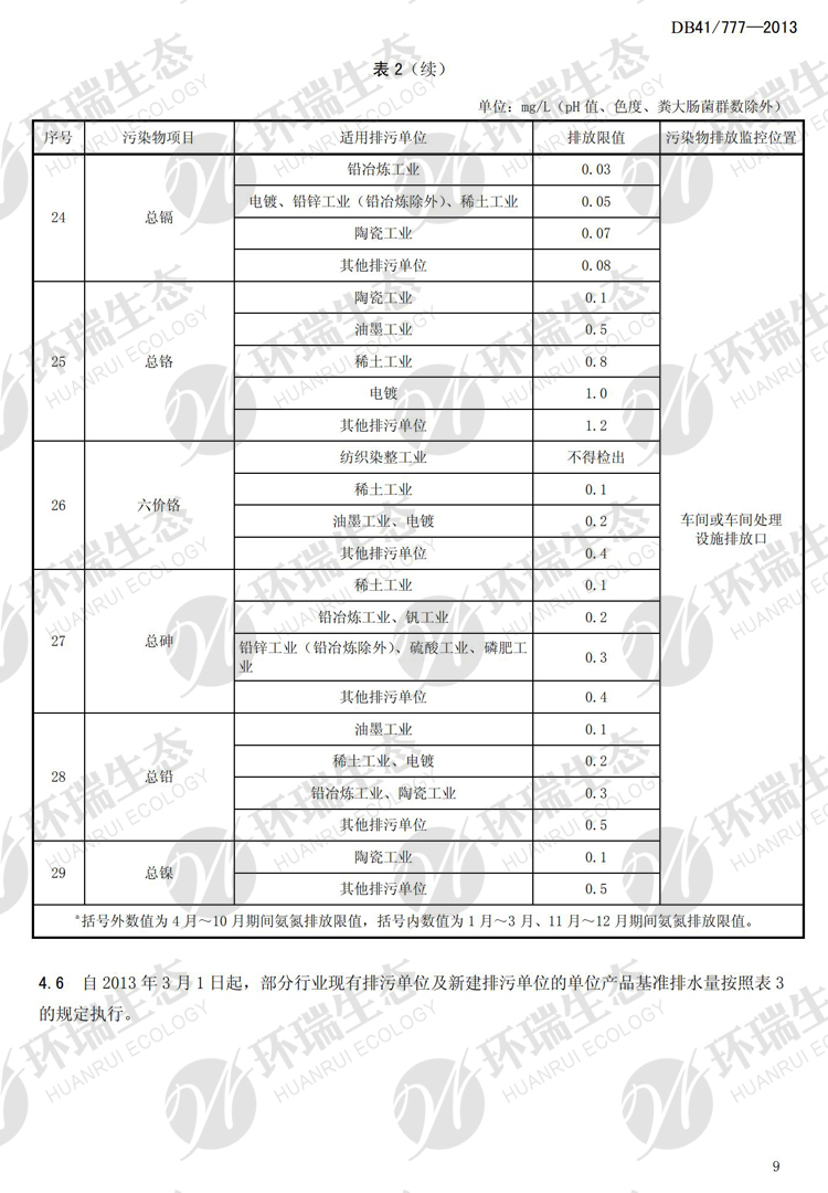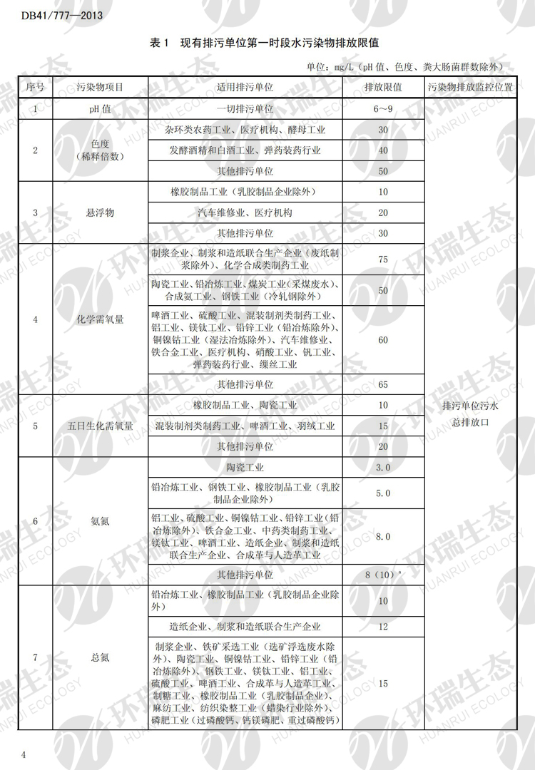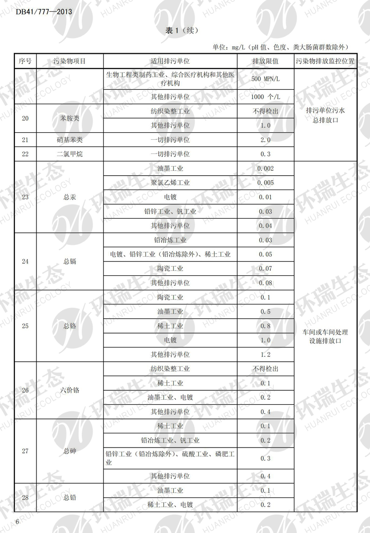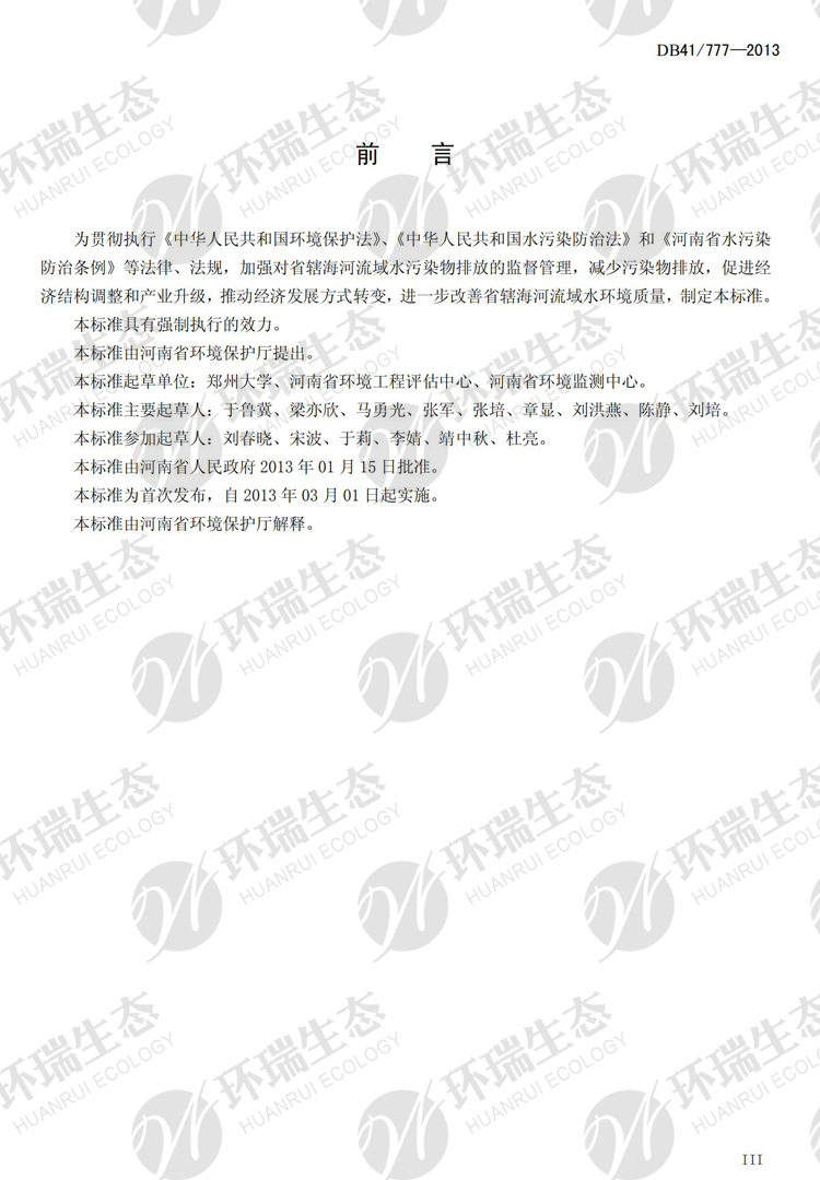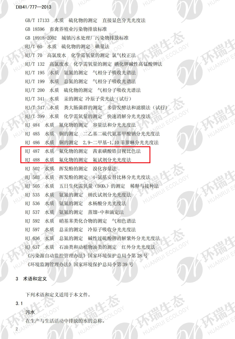 氟化物之河南《省轄海河流域水污染排放標準》DB41/777-013